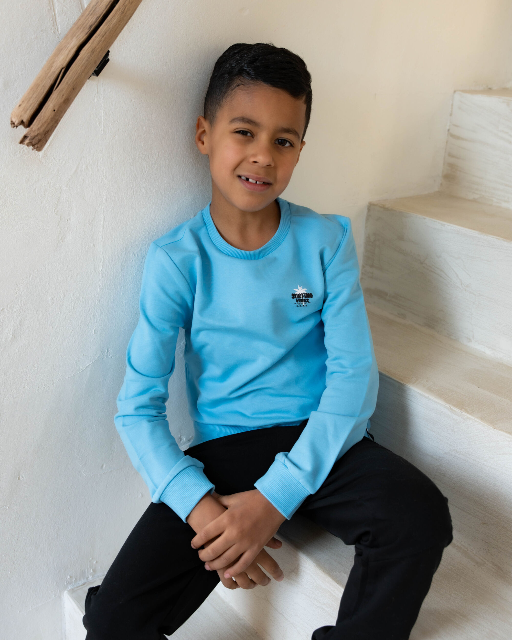 De blauwe sweater Saba heeft een gave print op de achterkant. De sweater is gemaakt van biologisch katoen en elastaan. Sweater verkrijgbaar in maat 92 t/m 164.