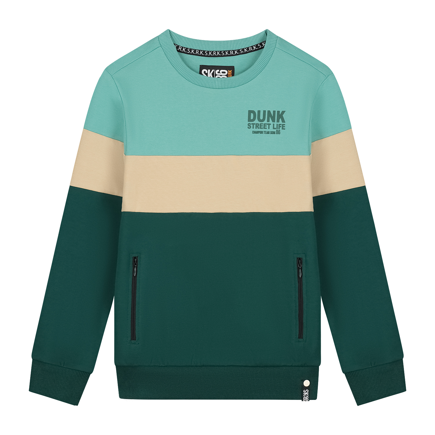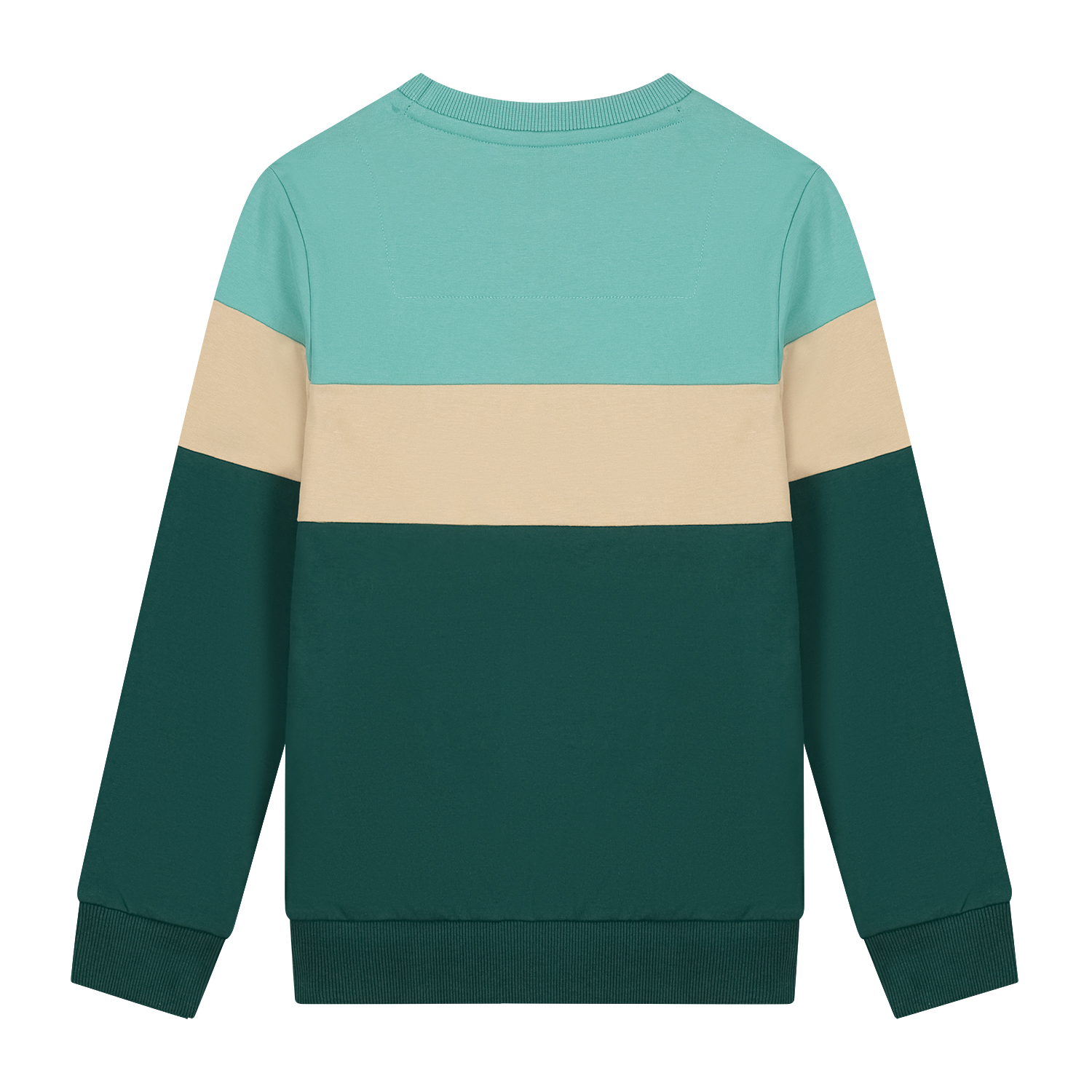 De colourblock sweater Sjoerd heeft 3 kleuren waardoor deze sweater fantastisch te combineren is. De sweater is gemaakt van biologisch katoen en elastaan. Sweater verkrijgbaar in maat 92 t/m 164.