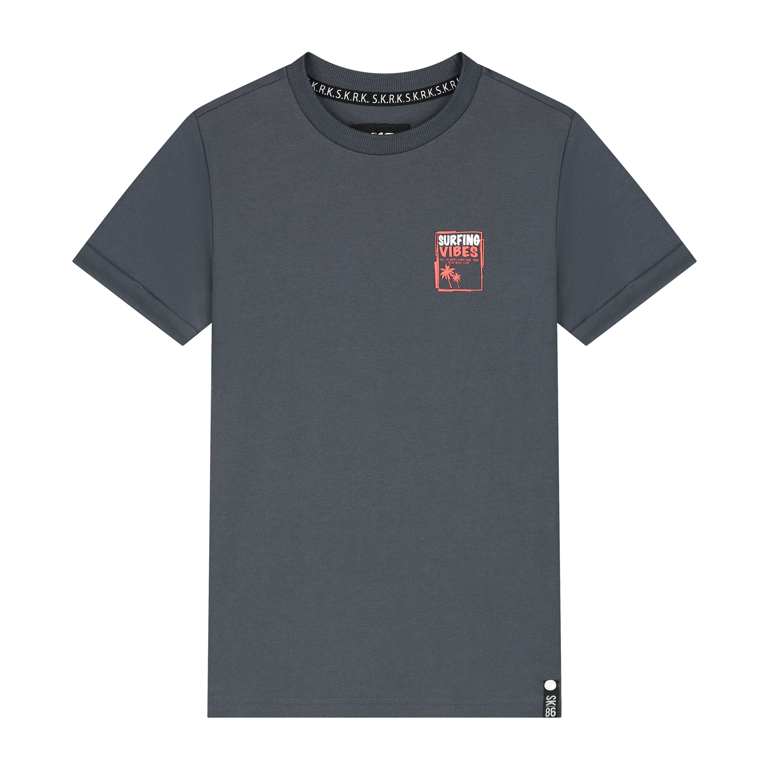 De Taks uit de nieuwe SKURK zomer collectie isย een grijs jongens t-shirt gemaakt van biologisch katoen en elastaan. Hierdoor krijgt het t-shirt een hoog draagcomfort en ademend vermogen. Op de voorkant heeft het een kleine print en op de achterkant een toffe backprint. SURK t-shirt verkrijgbaar in maat 92 t/m 164.